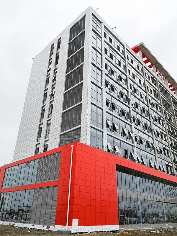 御彩石饰面、氟碳漆饰面、岩棉保温层